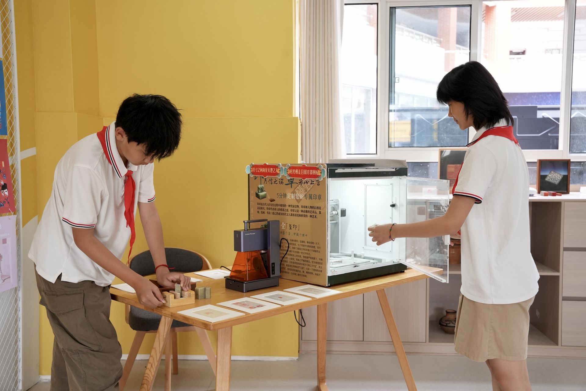 此外,还有“AI+美术”教室实现篆刻数字化,学生为火星车设计中国风logo;“AI+音乐”教室用Suno AI创作星际主题曲,融合古筝等民乐元素;同学们通过AI剪辑软件制作双语微电影,讲述火星救援故事……