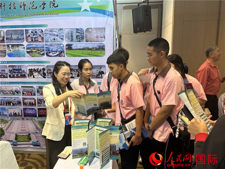 “留学广西”国际教育展(泰国站)现场,各高校代表正热情地向泰国学生介绍留学项目。人民网记者 白元琪摄