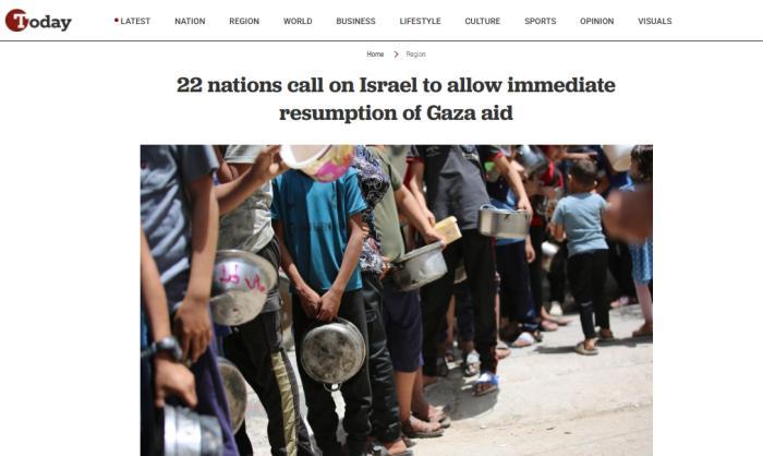 报道称,22国外交部长与欧盟外交与安全政策高级代表卡娅·卡拉斯在一份联合声明中承认,“援助有所恢复”,但强调以色列“已阻止人道主义援助进入加沙超过两个月”。