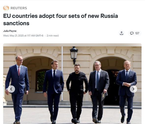 中新网5月21日电 据路透社报道,欧盟方面当地时间20日表示,就乌克兰危机对俄罗斯采取四项新制裁措施,其中包括针对俄方“影子油轮舰队”的制裁。