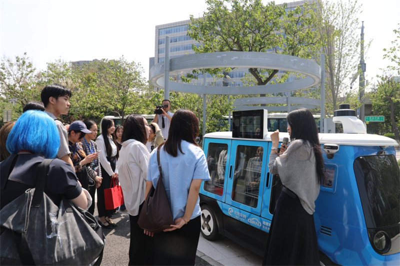 访华团一行参观自动驾驶示范区。北京市人民对外友好协会供图