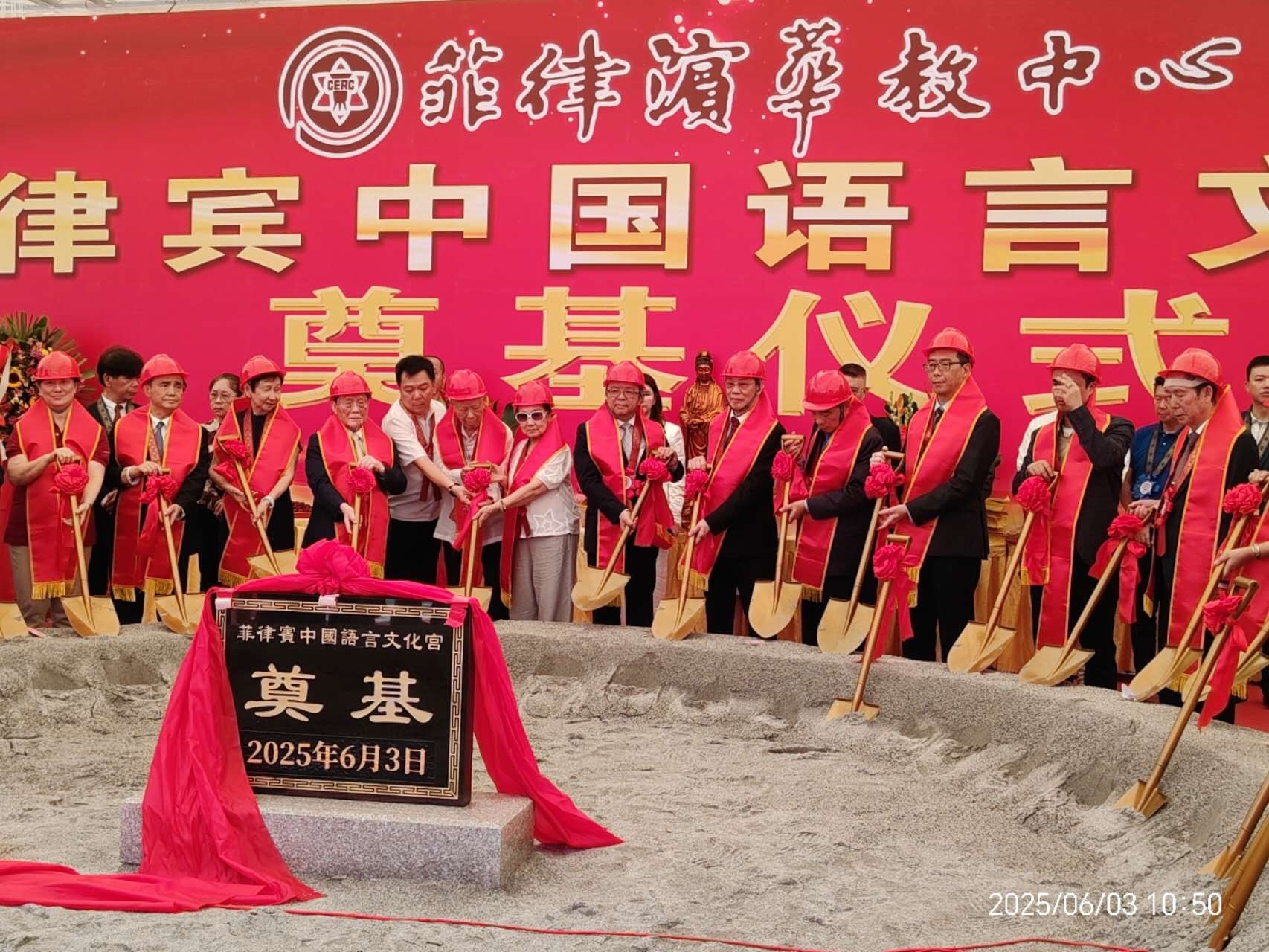 人民网马尼拉6月3日电 (记者樊帆)6月3日,菲律宾华教中心在马尼拉举行菲律宾中国语言文化宫奠基仪式。中国驻菲律宾大使黄溪连出席仪式并致辞,菲著名侨领陈永栽夫妇、菲华教中心主席黄端铭、语言文化宫筹建委主任委员蔡建立、菲华各社团负责人、各华校负责人及各界代表出席了仪式。