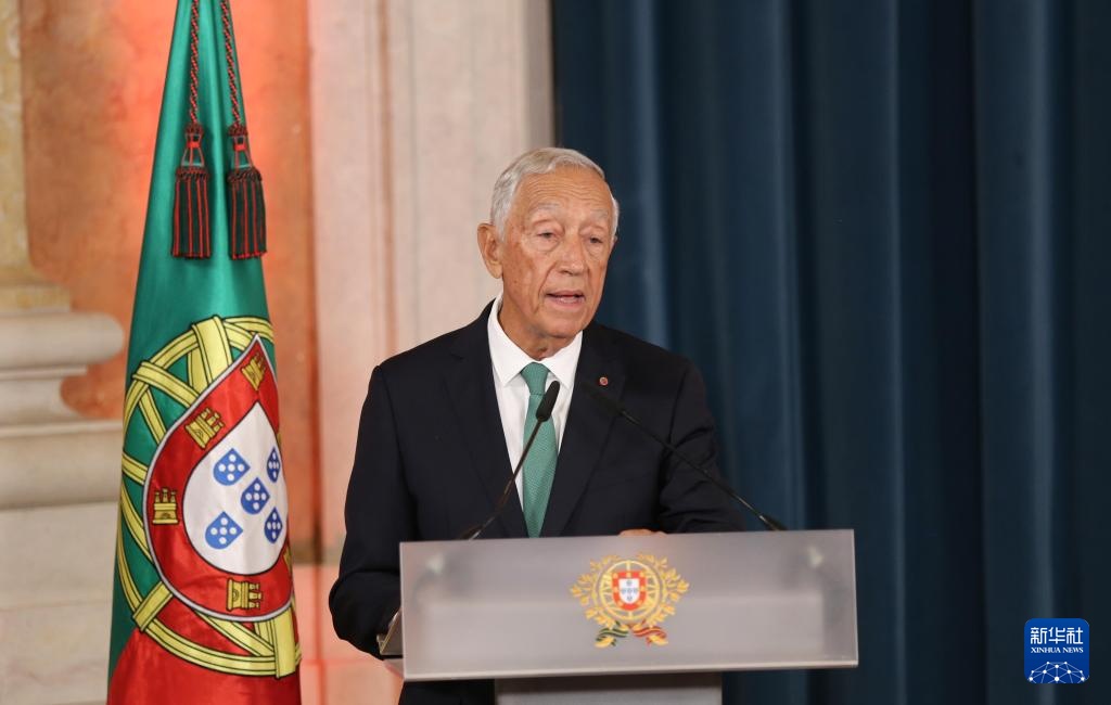 6月5日,葡萄牙总统德索萨在里斯本阿茹达宫举行的新政府就职仪式上致辞。新华社记者 荀伟 摄
