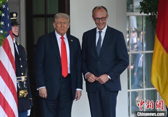 当地时间6月5日,华盛顿,美国总统特朗普在白宫与德国新任总理默茨举行会晤。 中新社记者 陈孟统 摄