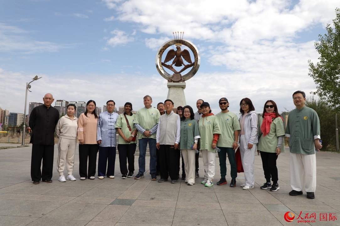 在现场,太极拳爱好者认真聆听讲解,并在老师示范引领下一起完成了整套动作。蒙古国武术发展协会成员和陈氏太极拳传人还进行了太极拳表演。