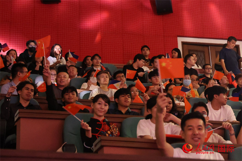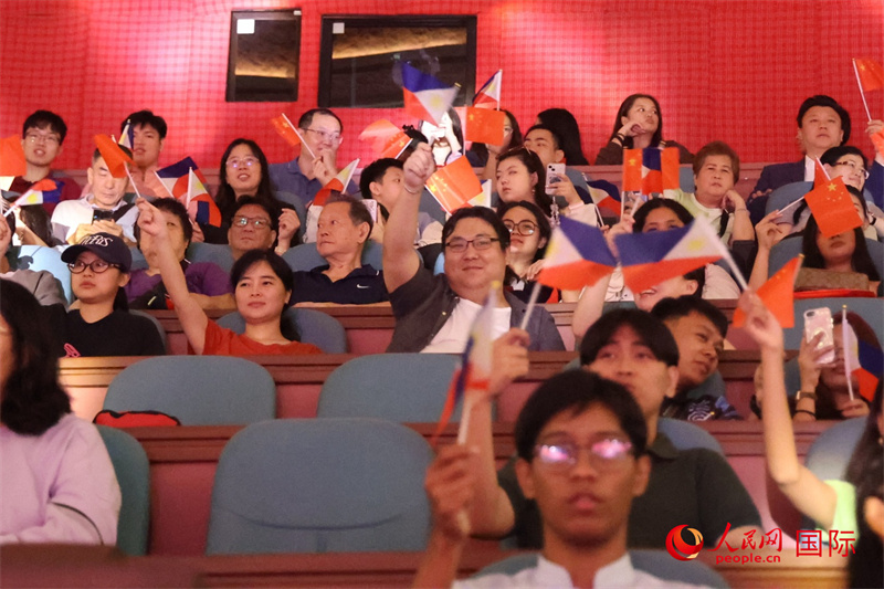 现场观众挥舞两国国旗,表达两国人民对中菲友好的诚挚愿望和殷切期望。人民网 记者樊帆摄