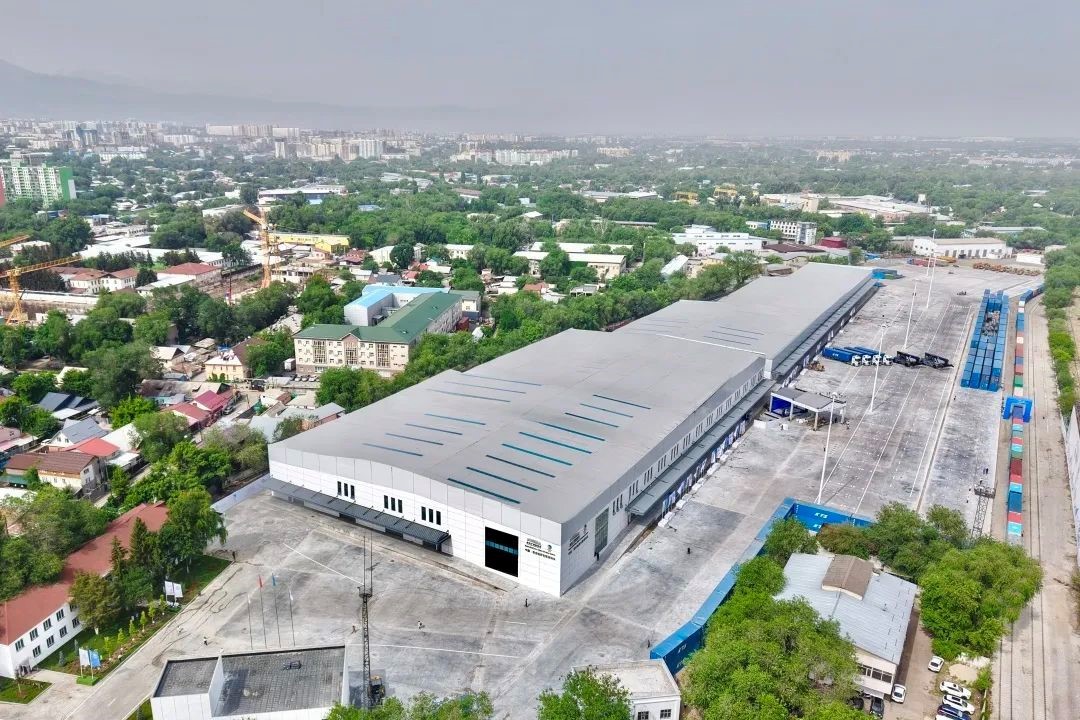该项目由中建六局、中建丝路承建,位于哈萨克斯坦阿拉木图市GTS2车站南侧,场区占地9.8公顷,涵盖综合仓库、集装箱堆场、铁路作业线、集装箱堆场和配套用房等设施。项目年设计物流产能约11.5万标箱,配备1.2公里铁路装卸线,拥有“1100+”标准箱堆存能力,可满足大规模商贸和物流需求。