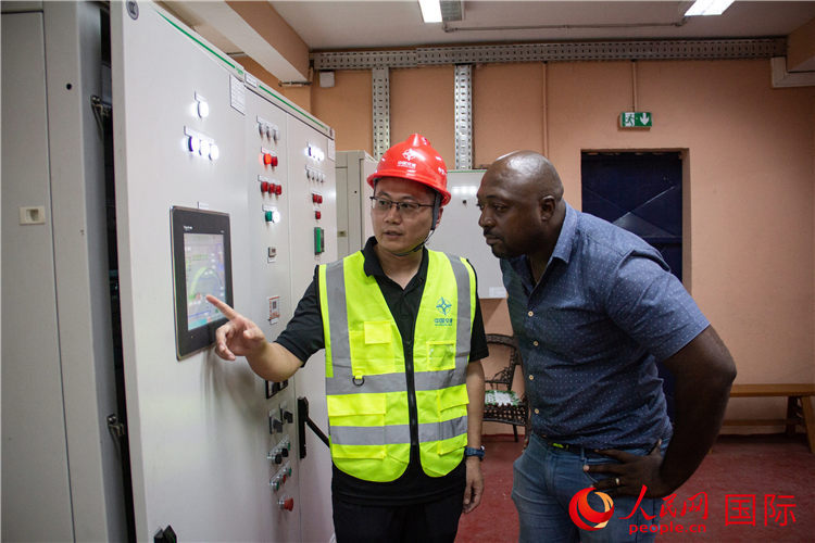 中交一公局集团承建的加蓬供水项目加压泵站内部。人民网记者 薛丹摄