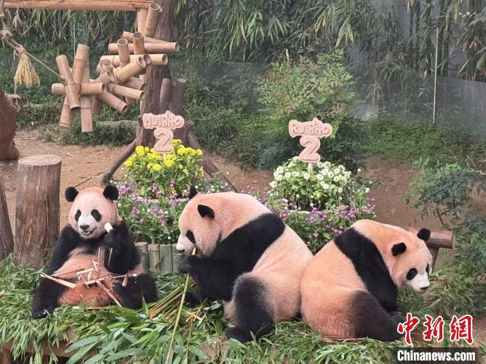 当天,约40名受邀观众来到现场参加生日会。特意赶来为“睿宝”和“辉宝”庆生的首尔市民金惠媛(音)表示,“这两年‘睿宝’‘辉宝’健康茁壮地成长,真的很感谢,我为它们感到骄傲”,“听说双胞胎马上就要独立生活了,希望在那之前,‘爱宝’‘辉宝’和‘睿宝’能一直幸福地在一起,继续健康成长”。
