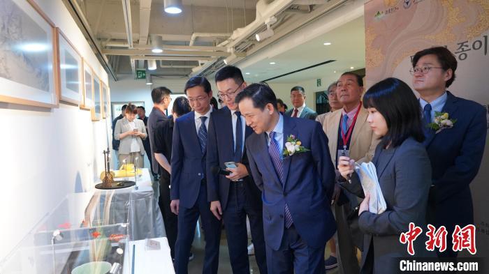 7月7日,“素笺清远——《中国历代绘画大系》之宋画展”在韩国首尔开幕。图为嘉宾参观展览。中新网记者 刘旭 摄