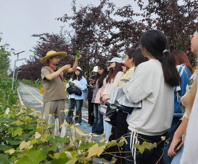 师生深入武陵山区,考察当地气候、土壤等自然条件对药材生长的影响,并结合土家族、苗族医药文化,了解并掌握“因地制宜”的中药资源分布规律。在药用植物园内,老师们讲解了黄连、厚朴、紫萼等百余种药用植物的形态特征、生长习性和药用价值,同学们通过“望闻问切”的方式,细致观察每一株草药的根、茎、叶、花、果实等器官特征,并做详细记载,强化对“药出深山”的直观认知。