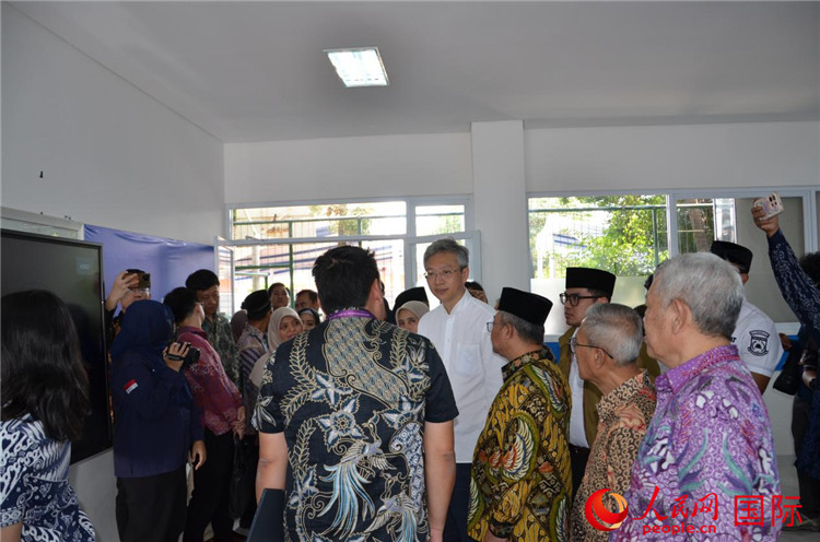人民网雅加达7月24日电 (记者李培松)7月23日,中国驻印尼大使王鲁彤与印尼基础与中等教育部长、穆联秘书长穆蒂等印尼嘉宾共同为中方援建的鲁哈玛职业高中新教学楼项目落成揭幕。