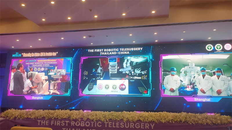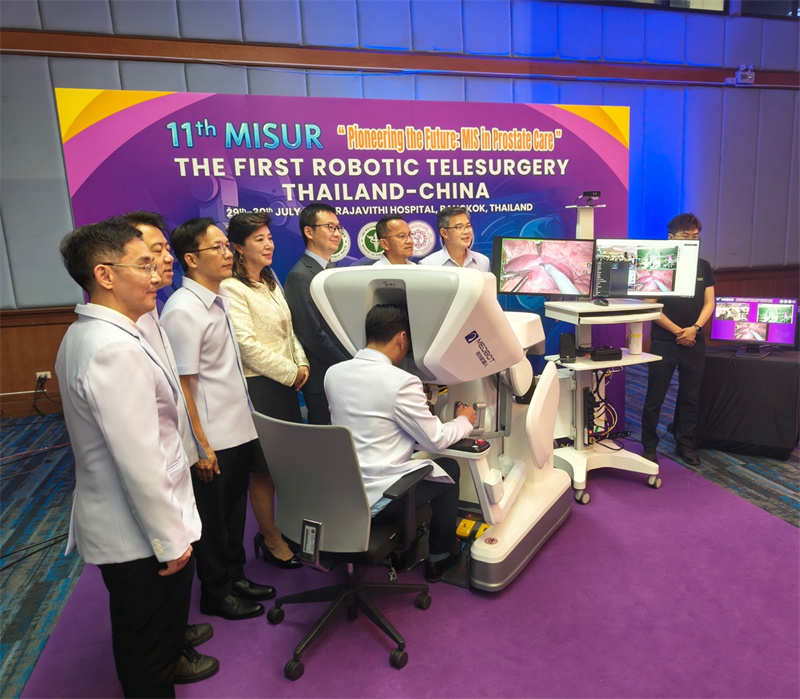 泰国公共卫生司司长塔威信博士表示,机器人辅助远程手术已成为现代医学技术的重要发展方向。医生可远程精确控制具备多自由度、抗手抖动能力的机械臂,在不直接接触患者的情况下实施高复杂度微创手术,极大提升了操作安全性与效率。这为缓解医疗资源均衡分配提供了新途径——通过新一代通信技术与手术机器人技术结合,实现跨地域手术治疗,有助于缩小地区之间的医疗差距,让更多的人享受到优质医疗服务,为患者带来更多的希望。