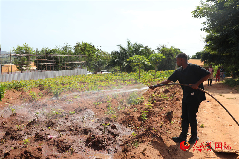 家住在基夫鲁地区的托比亚西·曼戈莱正在农场灌溉。人民网记者 沈小晓摄