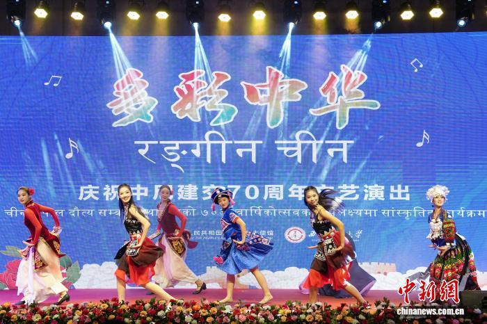 8月1日,中国驻尼泊尔大使馆在尼首都加德满都举行中尼建交70周年招待会。图为庆祝中尼建交70周年主题文艺演出。中新社记者 崔楠 摄