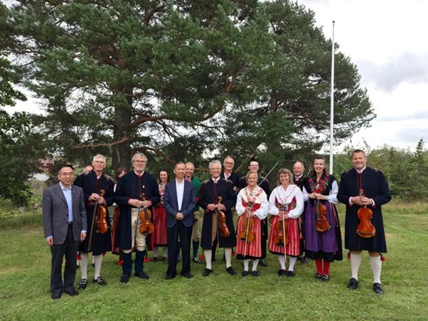中国驻瑞典大使崔爱民与瑞典北极光基金会主席博·艾克曼等人合影。中国驻瑞典大使馆供图