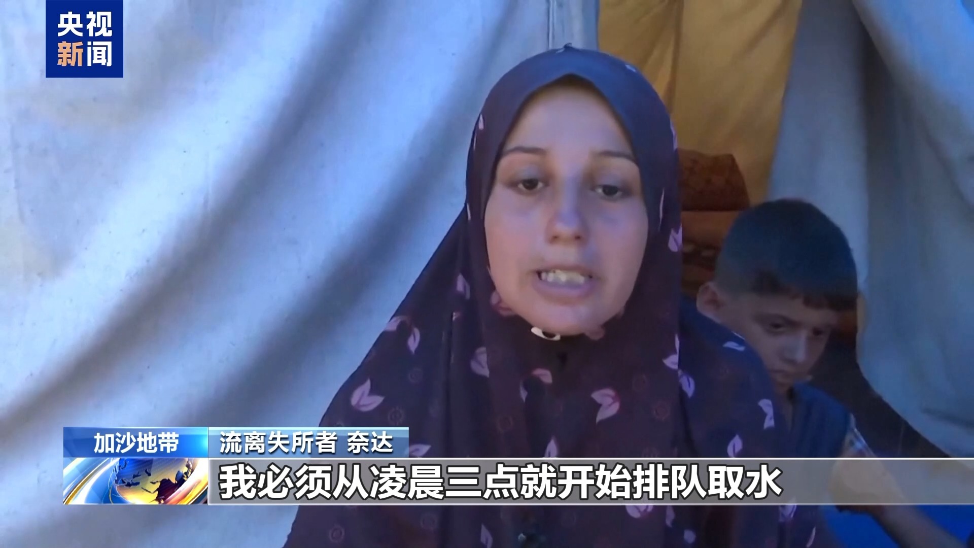 流离失所者 奈达:我必须从凌晨三点就开始排队取水。我恳求他们看在我孩子的份上,给我一些水吧,哪怕一滴也行。