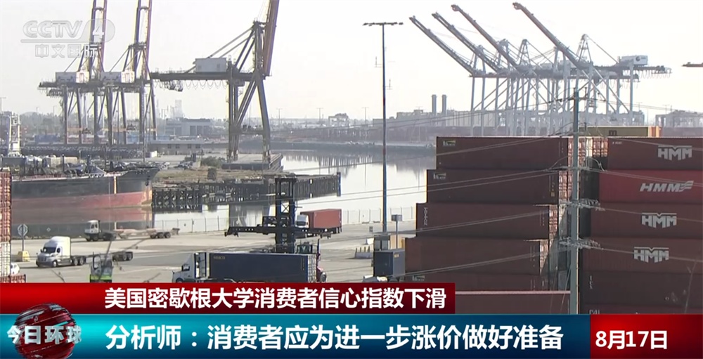 央视网消息:美国关税政策导致消费者对通胀的担忧加剧。美国密歇根大学15日公布,8月的美国密歇根大学消费者信心指数初值为58.6,低于7月的终值61.7。