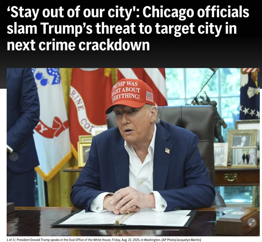 △美联社报道,芝加哥官员抨击特朗普对芝加哥的威胁,并称“别来我们城市”。