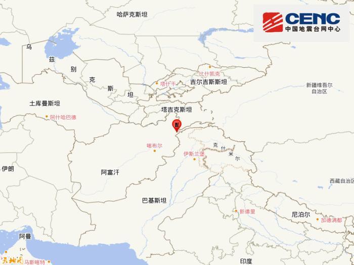 中新网8月27日电 据中国地震台网正式测定:08月27日21时27分在阿富汗(北纬36.35度,东经71.40度)发生5.3级地震,震源深度150千米。