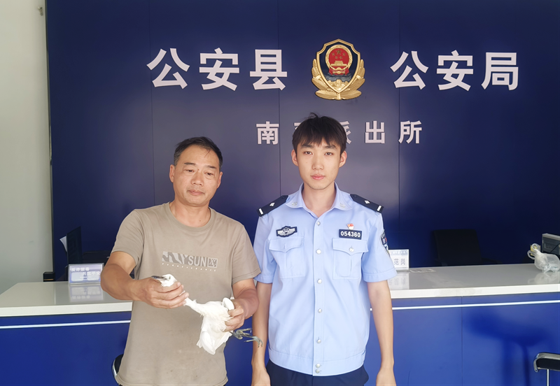 9月3日,公安县公安局南平派出所接到村民报警求助称,在田间劳作时发现一只疑似白鹭的鸟类从树上坠落地面,无法飞行。经初步观察,这只鸟的腿部受伤,因缺乏专业救助知识,于是向警方求助。