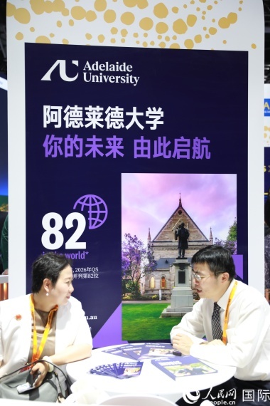 阿德莱德大学在澳大利亚国家馆内的展位。人民网记者 贾文婷摄