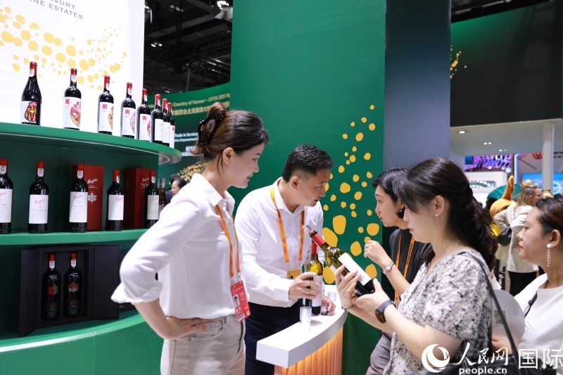 观众在澳大利亚国家馆咨询红酒业务。人民网记者 贾文婷摄