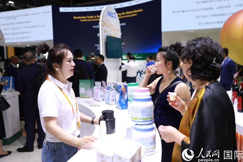 观众试饮澳大利亚乳制品。人民网记者 贾文婷摄
