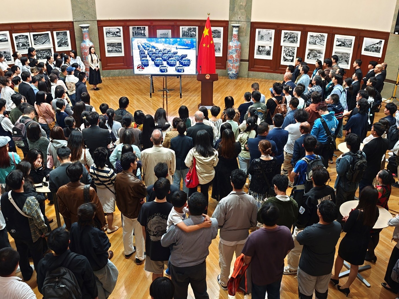 杨培栋表示,前事不忘,后事之师。今天,面临和平还是战争、对话还是对抗、共赢还是零和的抉择,中国人民将坚定站在历史正确一边、人类文明进步一边,与各国人民携手构建人类命运共同体。勉励领区广大同胞借助本次活动,共同铭记历史、缅怀先烈,珍爱和平、开创未来,传承和弘扬伟大抗战精神,为以中国式现代化全面推进强国建设、民族复兴伟业而团结奋斗!