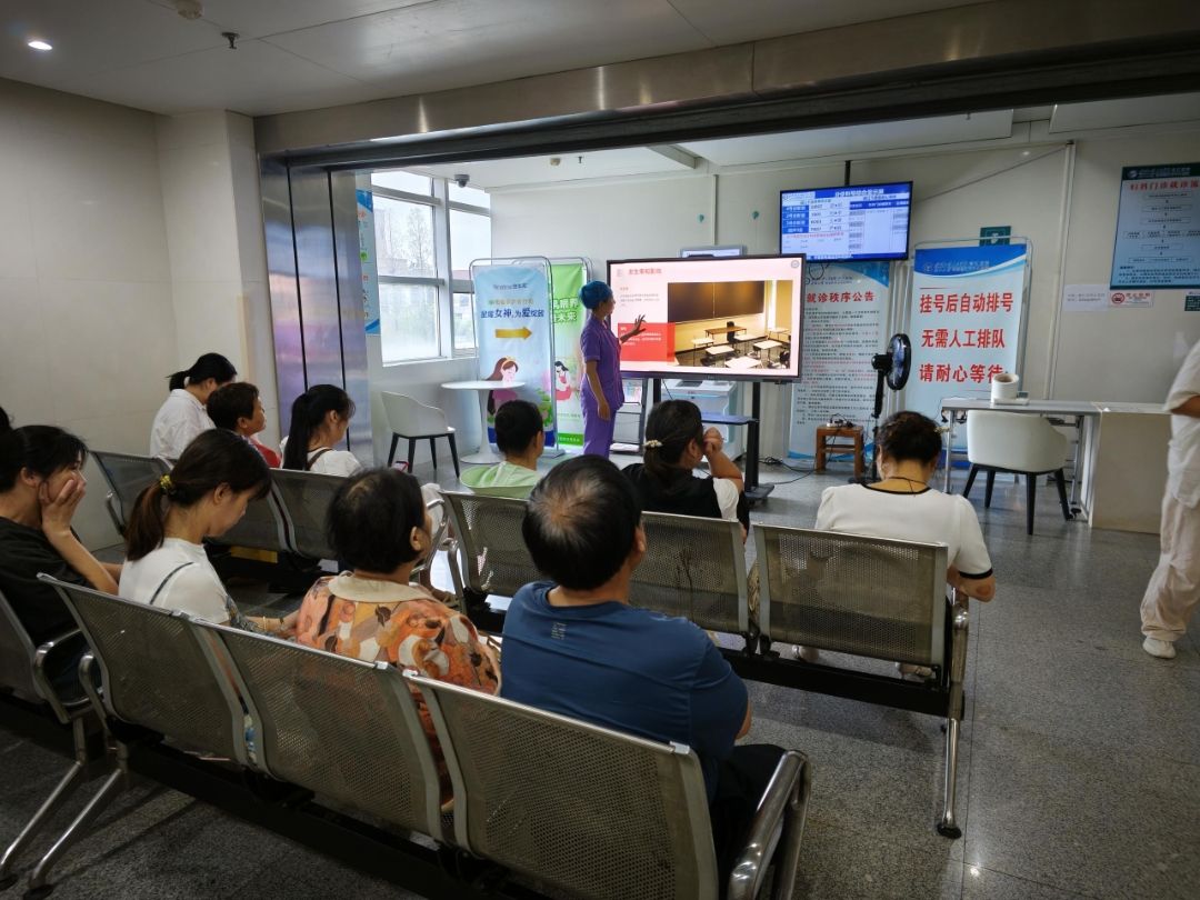 除义诊外,候诊大厅还开设了“科普微讲堂”。产科助产专科护士生动讲解孕期膳食搭配,创新采用“拳头法”,帮助孕妈轻松掌握每日谷物、蔬果、蛋白质的摄入比例;新生儿科卢彦医生随后带来《小黄人不再黄——新生儿黄疸居家观察秘籍》主题讲座,通过短视频与现场演示,手把手指导新手爸妈科学应对新生儿黄疸,消除“谈黄色变”的焦虑。LED大屏持续播放出生缺陷防治科普动画,多形式、多角度强化健康教育。不少准父母和新手爸妈踊跃参与,就各类困惑与医生深入交流。现场互动热烈,气氛融洽。