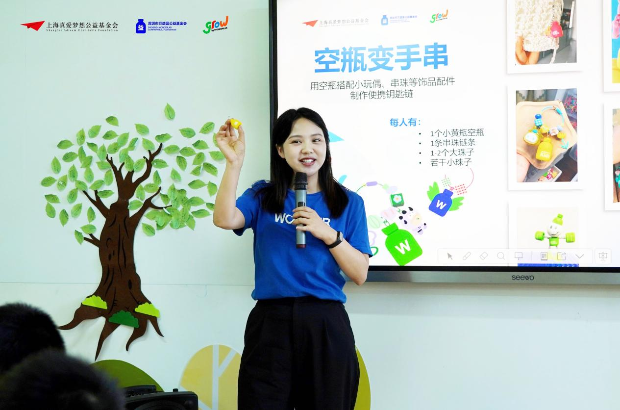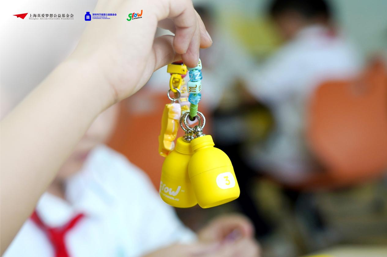 值得一提的是,此次揭牌仪式不仅是梦想中心的交付,更是一场融合健康与教育理念的公益实践。现场,万益蓝WonderLab特邀国家级营养师开展健康科普活动,从饮食营养、生活习惯等角度为学生和老师带来实用知识,传递“健康与教育并重”的成长理念。营养师还与学生积极互动,带领大家用万益蓝WonderLab回收的益生菌瓶子改造成手串或钥匙链,这场充满创意的手工活动,既传递着万益蓝深耕公益的温暖初心,也以“旧物改造”践行环保与可持续理念。