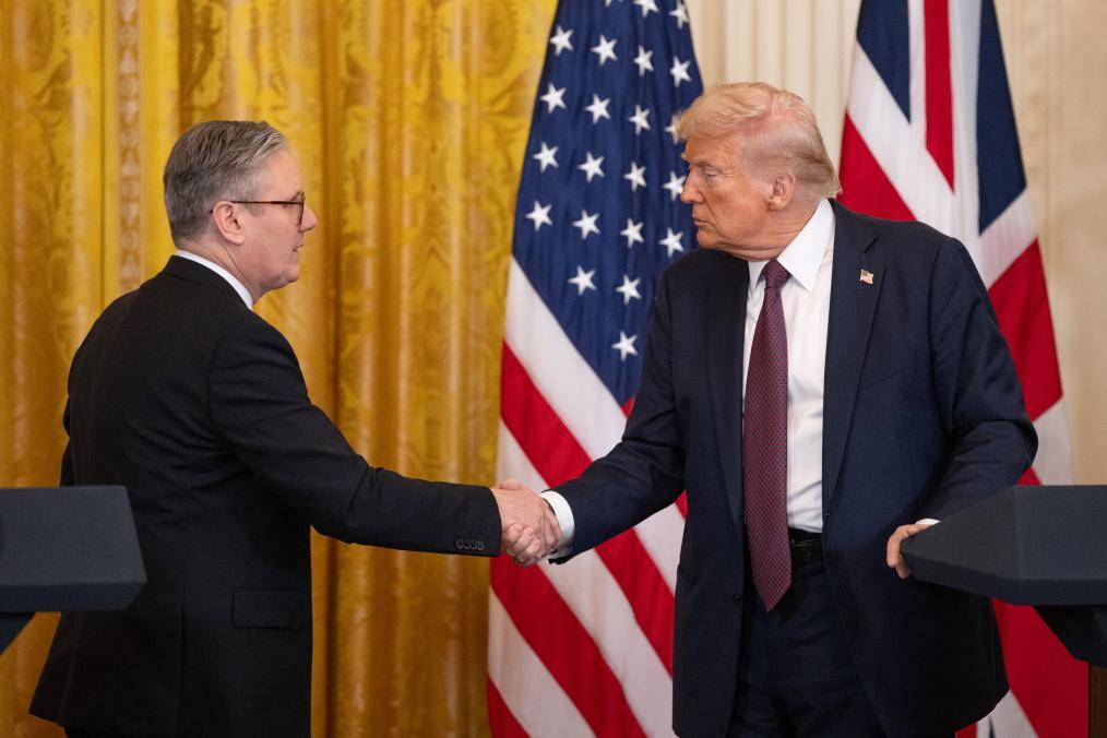 2月27日,美国总统特朗普(右)与英国首相斯塔默在华盛顿白宫出席联合记者会。新华社记者胡友松摄