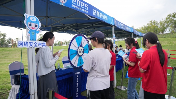 集章闯关、套圈答题、鉴别谣言、荆小信打卡……9月15日,“网络安全创意普法集市”在荆门市园博园热闹出摊,为广大市民带来了一场兼具知识性与趣味性的法治盛宴。