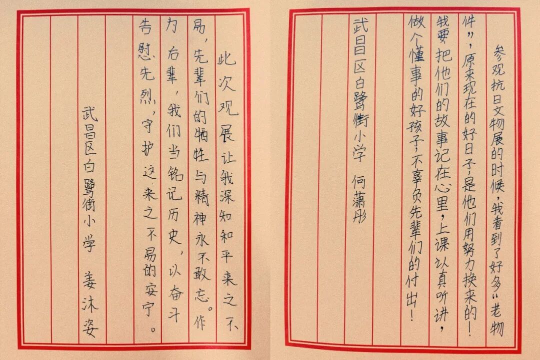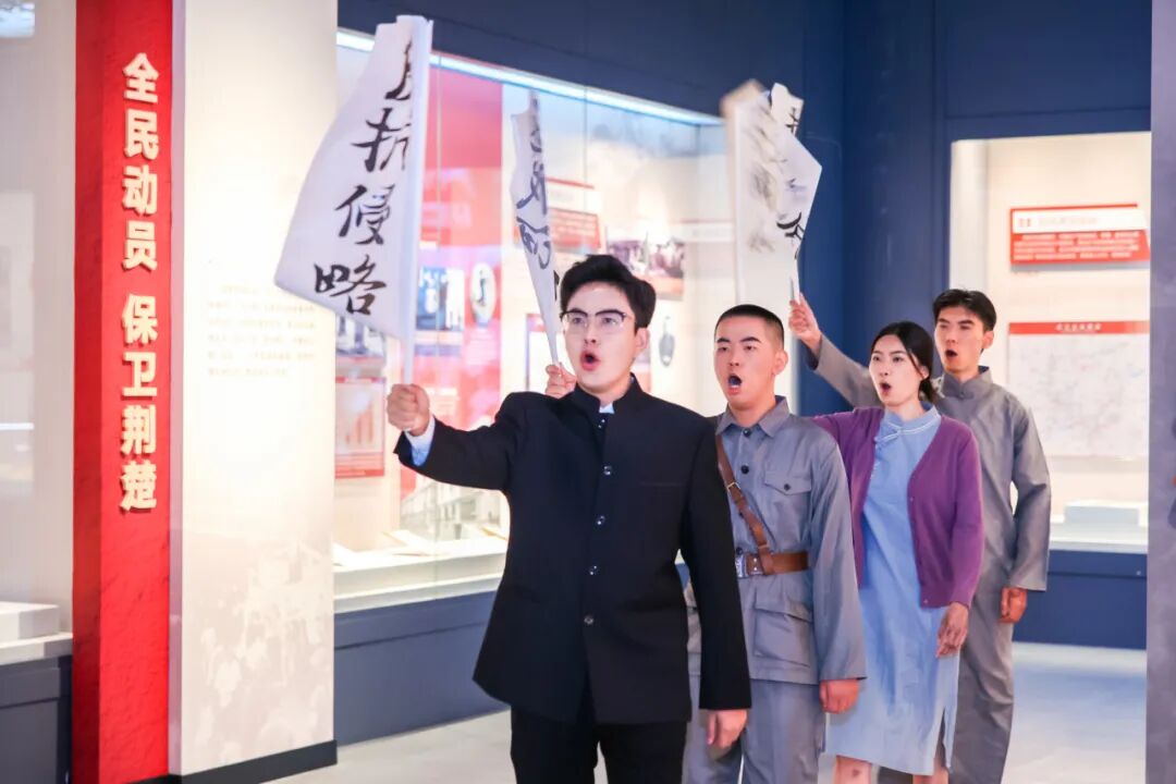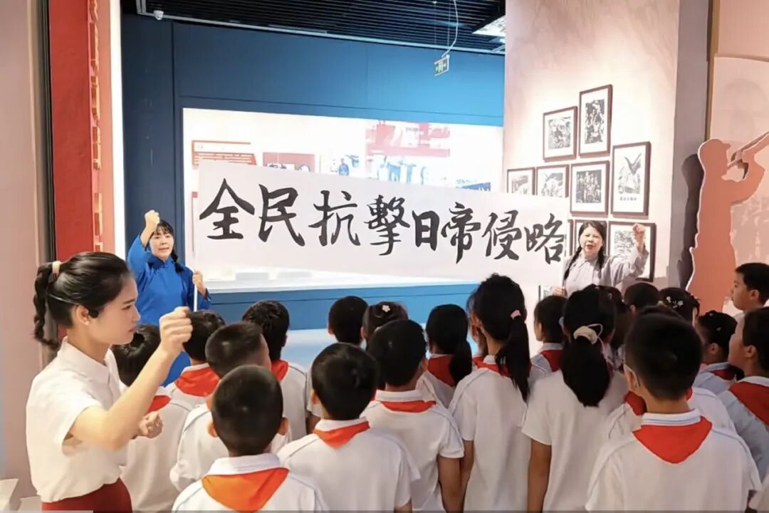 在“保卫大武汉”场景前,同学们用童言童语宣讲抗战故事,齐声高唱抗战歌曲;在“跨越时空的对话”环节中,大中小学生深情诵读红色家书,写信给保家卫国的战士们,表达内心的无限崇敬;在打卡红色专题展览时,大家参与演绎情景剧,让历史可触可感。