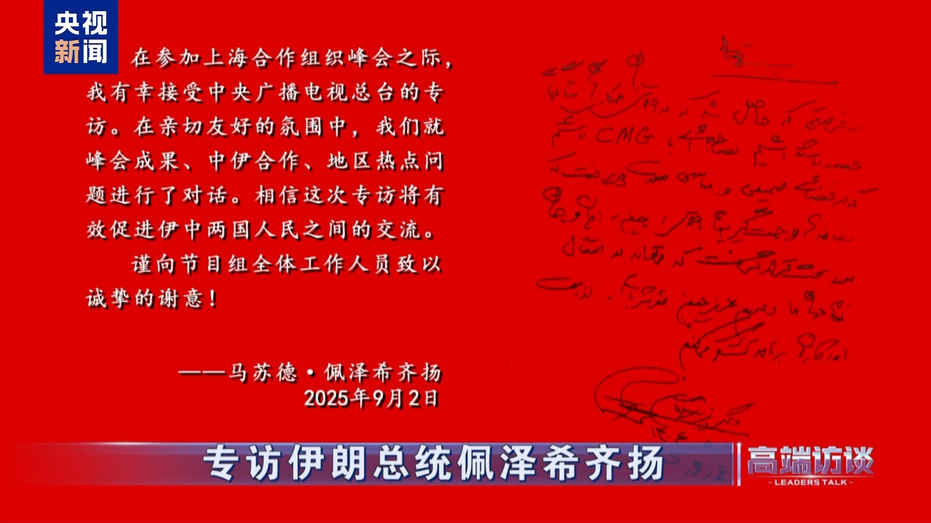 伊朗总统佩泽希齐扬在接受总台专访后题词