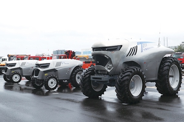 据了解,参展的鸿鹄系列 T200、T70等智能农机均为十堰本地制造。工作人员介绍,该系列 T200、T70及测录机器人已实现量产,技术处于国内领先地位。