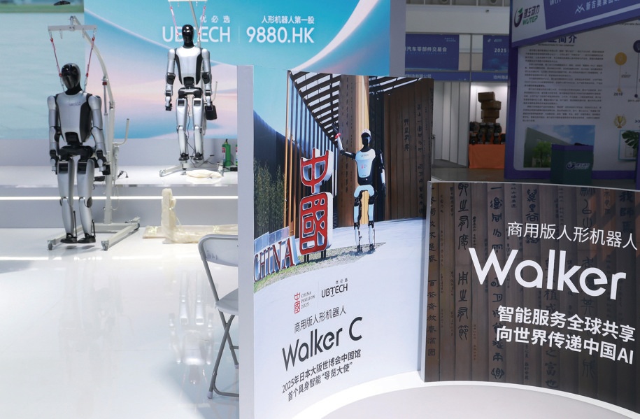 在人机协同智联展区,4台人形机器人格外引人注目,其中3台正在模拟搬运分拣作业。工作人员介绍,这些机器人是深圳市优必选科技股份有限公司于今年7月发布的新一代人形机器人 Walker S2。