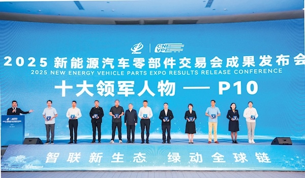2025新能源汽车零部件交易会评出的“十大领军人物”上台领奖。特约记者刘爱理摄