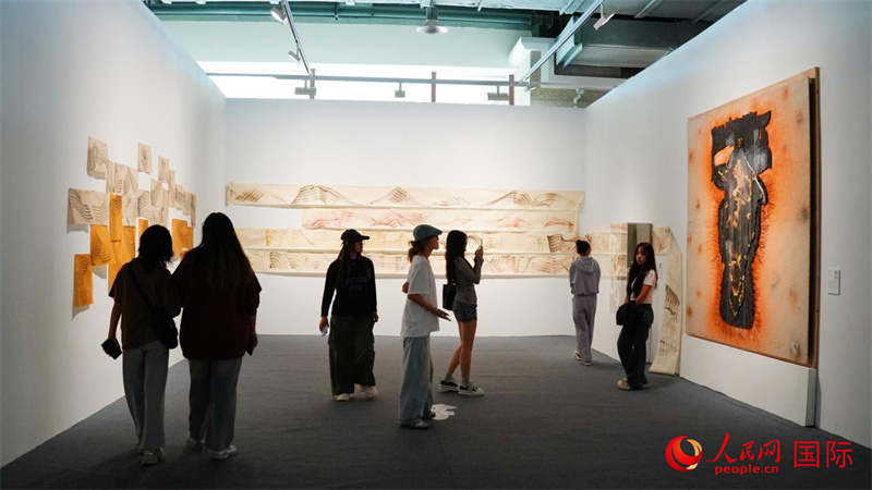 该展厅呈现意大利艺术家马泰奥、罗马尼亚艺术家安德烈娅、加拿大艺术家米歇尔、刚果(金)艺术家卡拉玛与中国艺术家陈明坤作品。人民网 严小晶摄
