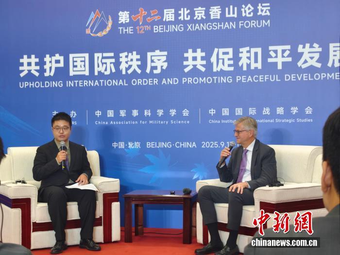 图为联合国负责维和事务的副秘书长让-皮埃尔·拉克鲁瓦(Jean-Pierre Lacroix)在第十二届北京香山论坛高端对话期间接受媒体采访。 中新网记者 薛凌桥 摄