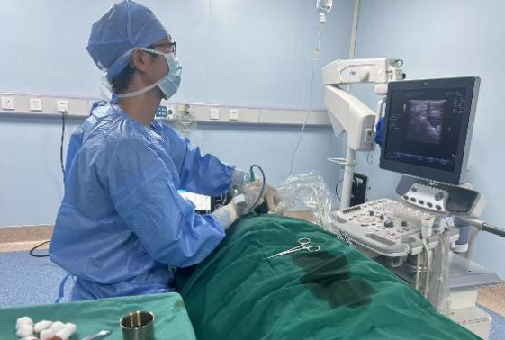 2.穿刺定位:在超声实时监控下,将微波消融针精准穿刺至结节内部;