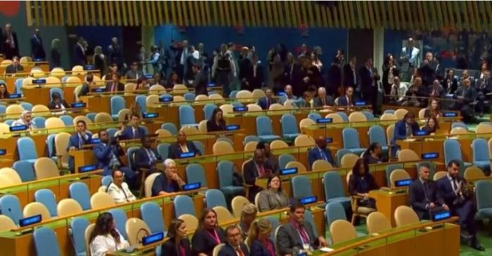 众多联合国会员国代表起身离席,代表席顿时空空荡荡