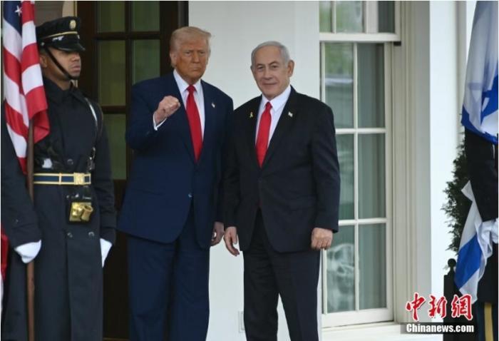 资料图:当地时间2025年4月7日,美国总统特朗普与以色列总理内塔尼亚胡在华盛顿白宫会晤。中新社记者 陈孟统 摄
