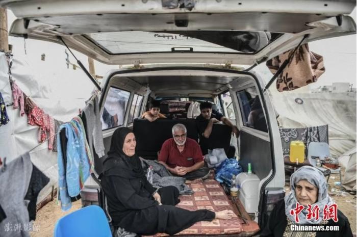 资料图:加沙汗尤尼斯,巴以冲突持续,当地遭以色列袭击后,流离失所的当地民众在困难条件下艰难求生。因家园被摧毁,他们选择住在汽车内或是搭起的临时帐篷。