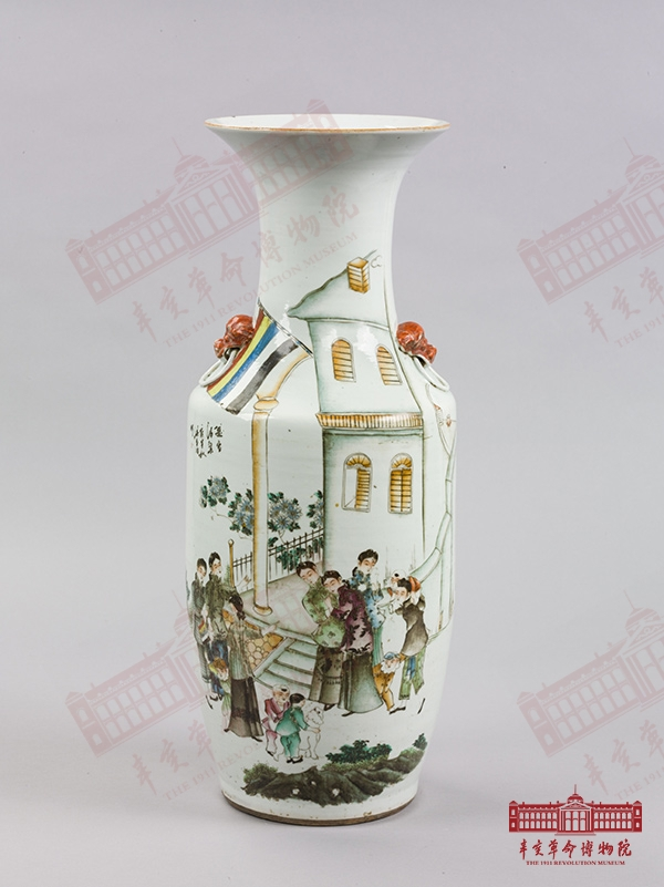在辛亥革命博物院的展厅里,一件民国粉彩五色旗新时装人物图诗文狮耳掸瓶总能吸引不少参观者驻足。这是典型的民国时期景德镇窑制品,撇口处描金细腻精致,狮耳纹饰鲜活灵动,瓶身踏春图景里,人物衣着巧妙融合传统纹样与当时新风尚,洪步余先生于瓶身题写的“最爱晴和春景好,劝邀同伴踏春回”,墨色饱满厚重。武昌的枪声击碎了封建帝制的枷锁,这件掸瓶正是那个变革时代的“见证者”。辛亥革命之后,中国不仅迎来政治制度的新生,人们的思想与生活也踏上革新之路,彼时的中国正带着这份勇气,以开放姿态尝试融入世界发展潮流。