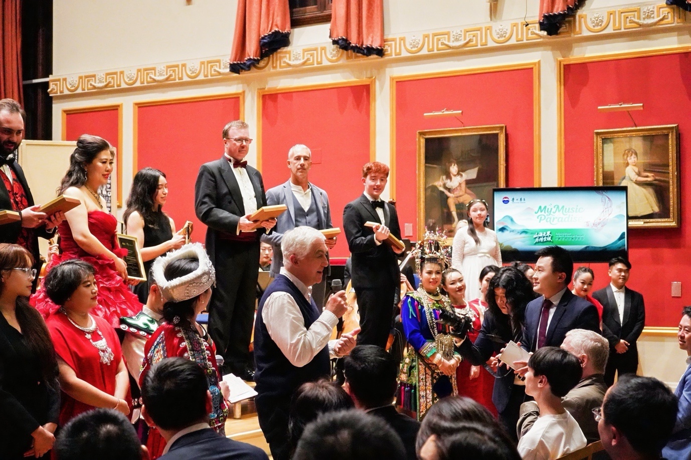 本次音乐会还特设荣誉授予环节,为贵州文演集团20名音乐家及6名欧洲音乐家颁发“中欧音乐大使”称号,以鼓励他们履行“以音乐为桥梁、促进人文交流”的承诺。 首次登上英国舞台的贵州音乐家杨胜东难掩激动:“第二次搭档我们更显默契,中西方音乐碰撞出了新的韵味。”