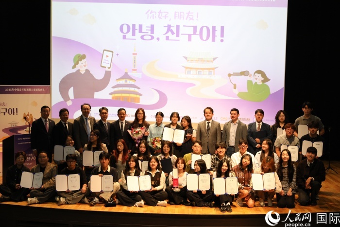 人民网首尔9月29日电 (记者莽九晨)29日,“你好,朋友!”中韩青年短视频大赛颁奖典礼在首尔举行。中国驻韩国大使戴兵、韩国《中央日报》代表理事朴长羲出席并颁奖、致辞。