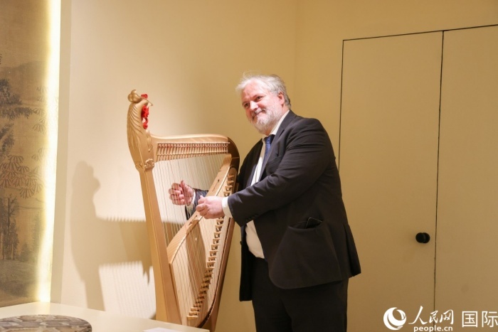 嘉宾体验中国乐器。人民网记者 任皓宇摄