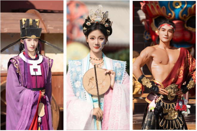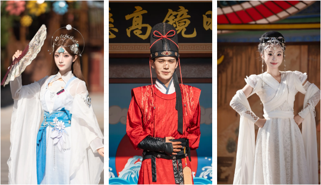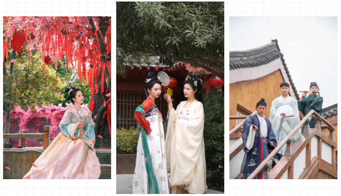 首先,清明上河园是宋式园区,和古装超级适配!所以,可以着汉服入园,另外,园区设有三处免费换装点,分别位于迎宾门广场、宋装馆、尚服局,都可以免费换装,团扇、折扇也可以备一把哦~