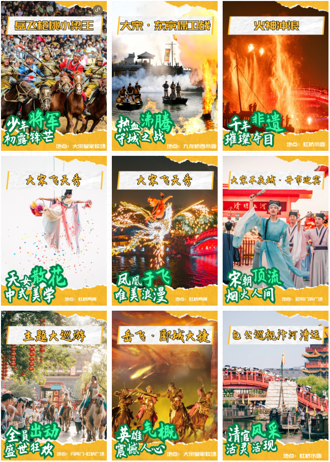 清明上河园——大型宋文化主题公园是国家文化产业示范基地、国家AAAAA级旅游景区,以《清明上河图》为灵感,还原北宋市井生活与宫廷娱乐,通过演艺活化宋代史与人物典故,是文化体验与休闲娱乐的完美结合,获得快乐的同时也会收获深刻的历史体验。
